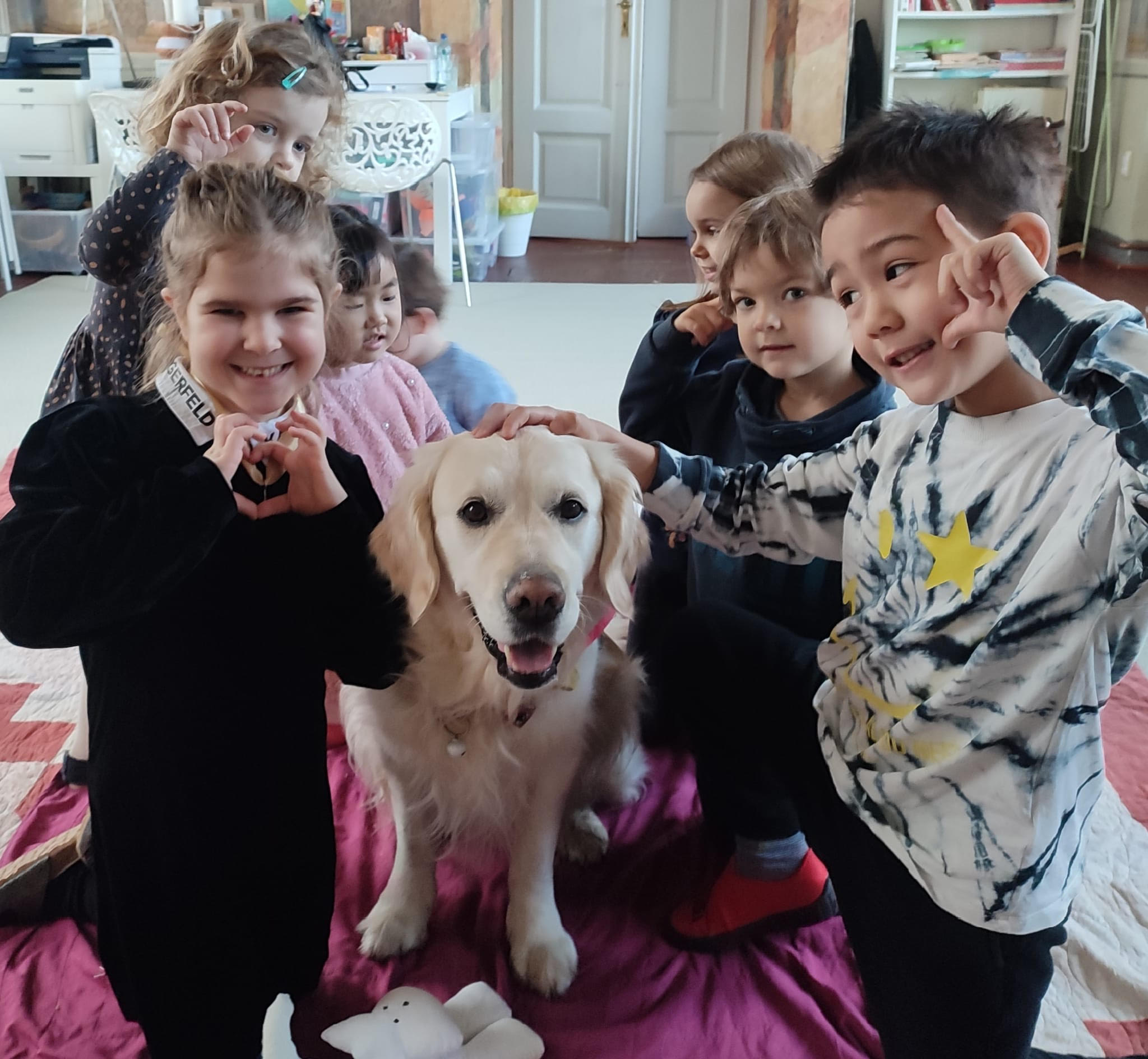 Sometimes we are visited by animals like trained dogs and so on. Of course, children allergic to animals do not come into contact with them.